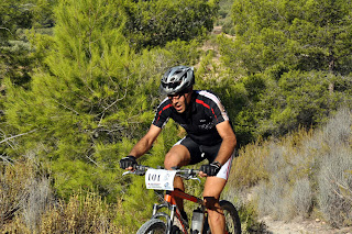 Passem pels avituallament on soc el primer en parar tranquil·lament, els que posaven el gomet que et marca com a circuit llarg em feliciten per la tranquil·litat en que passo. El recorregut continua pujant i baixant per camins terrers i senders divertits i ràpids, si ha algú no li ha agradat el recorregut es que no li agrada la bici de muntanya, per cert hi havia un altre faldut per aquí, es Josep V. que també a pujat a gaudir del mati calurós però divertit que ens han preparat la gent de la penya RiberaBike.