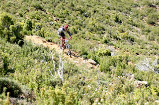 Aquí crec que ja es va decidir la prova, ens en anem uns 10 per davant, com tots sabeu a mi les sortides explosives no m'agraden així que vist lo vist penso que ja aniran caient pel seu propi pes. El recorregut comença per pistes de pujada amples i alguna que altra baixadeta per empalmar en un altra pujada. Arribem al que sembla un repetidor i baixada pel primer tram de sender, on emprenem la baixada pel davant del Morron que es aquesta roca tant singular, dalt de la bici ni el vaig veure, jejeje.