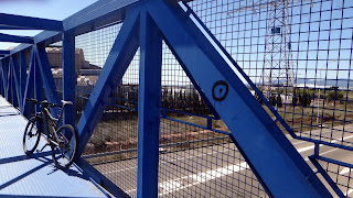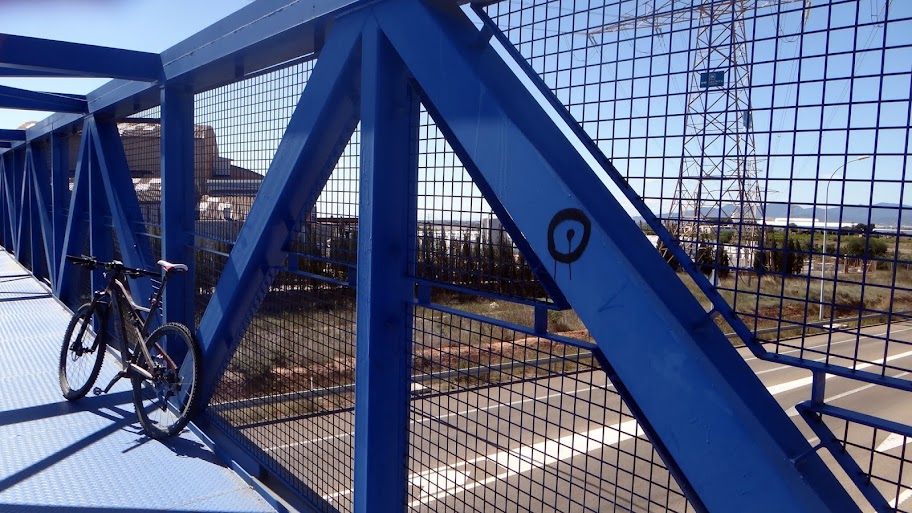 D'aquí a la Pobla Tornesa hi ha un tram dur ja que es tracta de molt de cudolar i de trams de sorra per on la bici no avança, damunt fa una pujada important creuo carreteres que no se ni quines son, jo només miro el GPS l'únic que es coneix el camí. Arribo a la Pobla on comença la part més avorrida del trajecte la V.A. ha estat convertida en un carril bici que va tot lo rato pel costat de l'autovia i els cotxes fan un soroll insuportable després de estar tot lo matí en l'absoluta tranquil·litat. Passo per Borriol cosa que m'indica que Castello esta més aprop, continuo baixant i finalment el pont del adeu a la autovia.