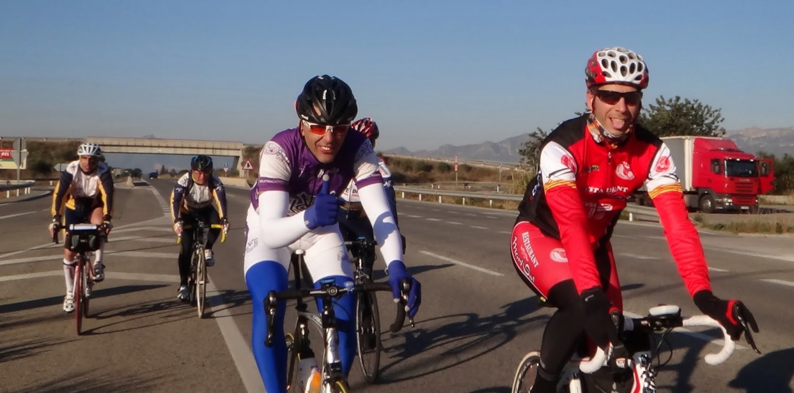 Poc a poc va sortint el sol pero de bon matí arribem a 1ºC de mínima, buffff quin fred, però el ritme no decau i anant a roda arribem a Reus per la part nord, rodejant Reus en busca de Mont-roig del cap al km 50 en 1'30h. Baixem cap a la costa en busca de la vella N-340 per on retornem cap a Reus ara per la part sud, al creuar Reus hem sorprèn que el transit de cotxes ens respecta en les rotondes. Degut als semàfors aquí el grup es va dividint pel davant, però nosaltres tranquils.